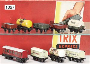 4 Teile 00, Trix Express, Kabelrollwagen, 4-achsig, Siemens, Planewagen V. S. N., 2 Holzwagen, guter Zust.