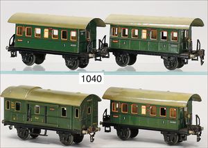 MÄRKLIN 4 Teile, 3 x 1727, 2-achsiger Personenwagen 3. Klasse, Reichsbahn, 18,5 cm, sehr guter Zust., dazu Gepäckwagen, 1728, 18,5 cm, leicht bespielt, guter Zust.