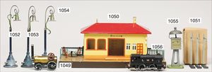 MÄRKLIN 5 Anbauteile für Bahnhof oder Bahnhofüberdachung, 7 cm x 13 cm, bespielt, gut