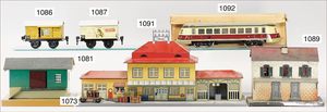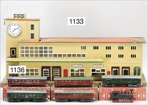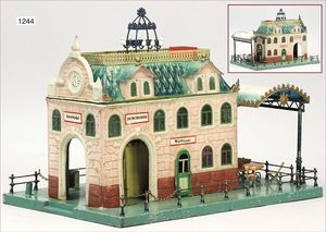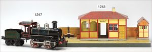 wohl KARL BUB Bahnhof, Spur 0, 51 cm breit, Blech lithogr., sehr guter Orig.-Zust., Orig.-Karton, ohne Aufdruck, Deckel fehlt