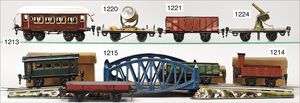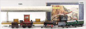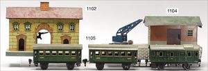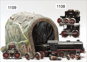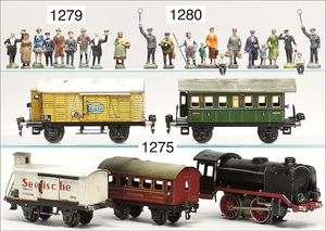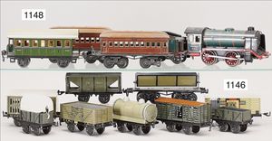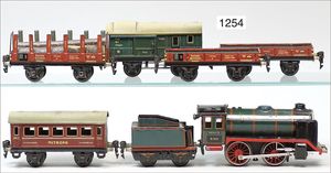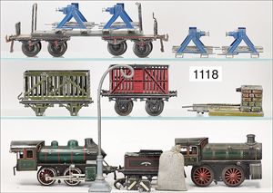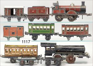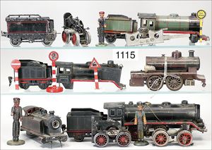 BING schönes Konv. Restaurierungsobjekte, Ersatzteilspender, darunter englische Uhrwerklok, B, einige BING-Wagen, ohne Dächer, 1 MÄRKLIN, 2B-Maschine, ohne Tender, nicht komplett
