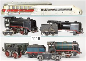 MÄRKLIN Spur 0, schöne Fundkiste, mehrere Lokomotiven, zerlegt, Gehäuse, Tender, Antriebe, darunter Schienen-Zeppelin, S.Z.1270, Gehäuse TWE 930, bitte besichtigen