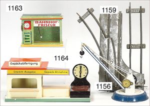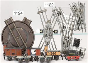 Fundkiste, Spur 0, Gleismaterial, ca. 30 Teile, dazu einige Weichenpaare, Drehscheiben, Uhrwerkausführung und elektr. Ausführung, bitte besichtigen
