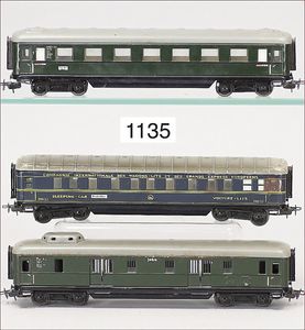MÄRKLIN Spur 0, 3 Teile, 1728, Gepäckwagen, 2 x 1731, Personenwagen, 2. und 3. Klasse, 18,5 cm, guter Zust.