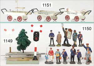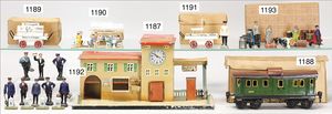 ELASTOLIN und andere, Bahnhofsfiguren, passend zu Spur 1, 9 Teile, Masse, 7,5 cm bis 8,5 cm, guter Zust.