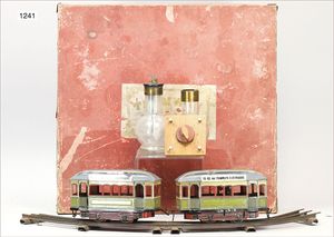 KARL BUB Schmalspur, Zugpackung, elektr. Ausführung, Schlepptenderlok, B, 1 Achse liegt lose bei, 2 x 2-achsige Personenwagen, Transformator, Gleismaterial, im Orig.-Kart., guter Zust.