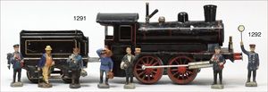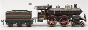 BING Spur 1, Schlepptenderlok, B, grün/schwarz, mit roten und gelben Zierlinien, Uhrwerk intakt, guter Zust.