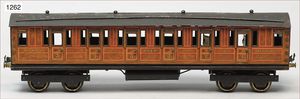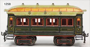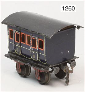 BING Express, Gepäckwagen, mit Inneneinrichtung, Blech, Teakholz lackiert, Dach handlackiert, bespielt, altersbed. Lackfehler, Orig.-Zust.