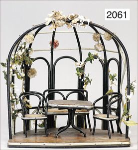 Puppenstuben-Wintergarten, Thonet, 34 cm breit, 33 cm hoch, mit passender Sitzgruppe, ausgef.