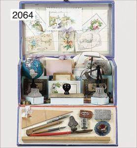 Konv. Zubehör, Dekorationsstücke, 1 x Hase, 10 cm hoch, 1 x Fächer, mit grünen Federn, 14 cm hoch, 1 x Lederkoffer, Bein-Tintenglas, Zinn-Schere, kl. Anstecknadel, Schlüssel und Anhänger, fester Verschluß, 5 cm breit, 3 cm hoch