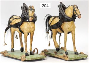 Holzpferd auf Rädern, bemalt, Alter ?, Gesamthöhe 38 cm