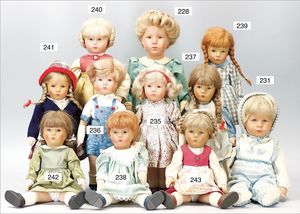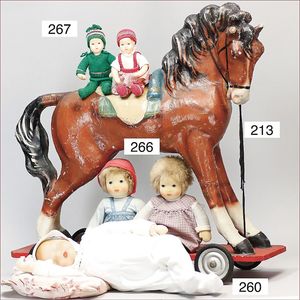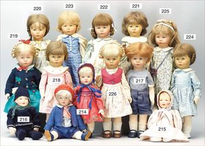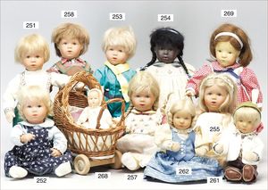 Heidi Ott, 3 kl. Künstlerpuppen, Körper mit Granulat gefüllt, ca. 21 cm