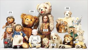 SCHILDKRÖT 3 x Ursel, mit festem Kopf, gemarkt 25, 29 und 36, stärker bespielt, teilw. Farbabrieb an Haaren und Nasenspitze, 1 x in Schwarzwaldtracht