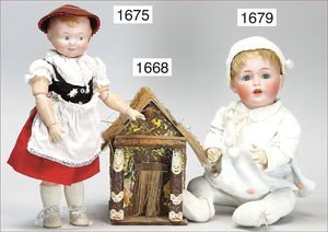 HERTEL, SCHWAB & CO., Biskuit-Porzellan-Charakterpuppe, 154, Biskuit-Charakter-Vollkopf, 52 cm, ca. 1912, blaue Schlafaugen, off. Mund, Transportrisiko für Augenmechanismus beachten, Toddler-Körper