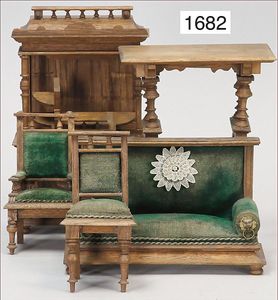 Möbelprogramm, Gründerzeit, Eiche, Buffet, Höhe 24 cm, Sofa, 20,5 cm, Tisch, 2 Stühle, bis auf kl. Stellen gut