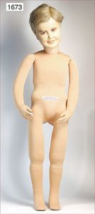 KÄTHE KRUSE Schaufensterpuppe, Junge, 1,04 m, bewegliche Beine, angenähte Arme, Krakelee-Bildung im Gesicht, Echthaarperücke