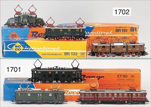 ROCO Konv. 3 Teile, H0, 1 x elektr. Schnellzug-Lok, BR116, Nr. 4143, 1 x Elektro-Triebzug, ET90, Nr. 04185 A, 1 x Nr. 43630, alles im Orig.-Kart., Kart. leicht verschlissen