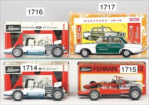 Konv. 4-teilig, KELLERMANN, 403, VW Polizei, leicht bespielt, KELLERMANN, 410 Feuerwehr, leicht bespielt, GAMMA Rupp, Geländewagen, neuwertig, Orig.-Kart., GAMMA Jeep, 9037, neuwertig, Orig.-Kart.