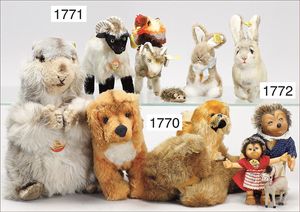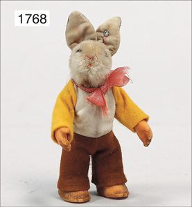 STEIFF, Esel, Samt, mit Knopf, bespielt, kl. Riss am Rücken, Höhe 12 cm