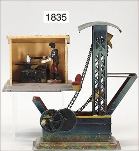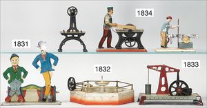 Zinndiorama in Schachtel, Frankreich um 1900, Metzgerei, 20 cm, Metzger m. Ofen u. Tisch, auflithogr, Stube, mit Fenster, außergew.