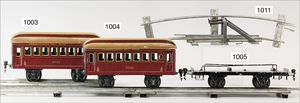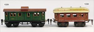 MÄRKLIN Spur 0, Zug bestehend aus 5 Personenwagen, 1727, 2-achsig, sehr guter Zust., davon 4 im Orig.-Kart., 1 Gepäckwagen, 1728, im Orig.-Kart., guter bis sehr guter Zust.
