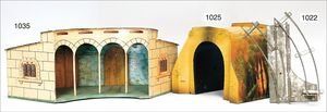 MÄRKLIN Uralt, Tunnel, mit Weg, Bank und Turmteil, passend zu Spur 0, guter Zust., mit altersbed. Lackfehlern