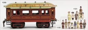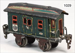 MÄRKLIN Spur 0, 1886, 4-achsiger Personenwagen, Blech lithogr., Dach handlackiert, bespielt, Lackfehler, Puffer fehlen