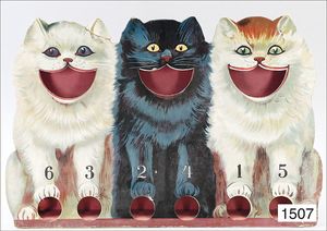 Wurf-Katzenspiel, um 1900, Papier lithogr., 52 cm breit, 34,5 cm hoch, 1 Ohr sowie 1 Seite etwas geknickt, schöner Orig.-Zust.