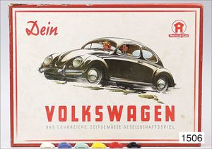 HAUSSER Spiel, Nr. 150, "Dein Volkswagen, das lehrreiche zeitgemäße Gesellschaftsspiel", Brettspiel mit Figuren und Anleitung, im Orig.-Kart., guter Zust., Kart. am Rand etwas verschlissen