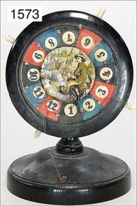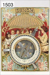 Rechenspiel, EUREKA, K. B. PARIS, Presspappe, bunt lithogr., mit Metall-Zeiger, 22,5 cm x 30,5 cm