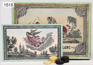 BIEDERMEIER Spiel, "Jeu du Cheval blanc", 5 kolorierte Tafeln, Holzspielsteine, mit Anleitung, Orig.-Kart. mit handkolorierten Deckbild, 24 cm x 18 cm