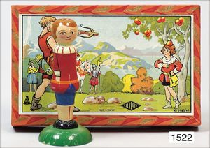 LILIPUT Spiel, "Willhelm Tell", Schießspiel mit Figur, bunt lithogr. Orig.-Kart., 21 cm x 13,5 cm, schöner Orig.-Zust.