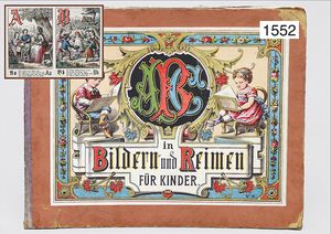 Kinderspiel, "ABC in Bildern und Reimen", Lesebuch, handkoloriert, mit versch. Kinderszenen, ein wenig verschlissen, BIEDERMEIER