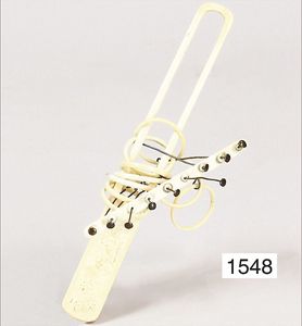 2 Teile, 1 x Federspiel, deutsch, im Orig.-Kart., 12 cm, aus Bein, handbemalt, teilw. Karikaturfiguren, 1 x Federspiel, "La couleuvre", Beinstäbe handbemalt, teilw. ein wenig zerbrochen, Orig.-Kart., 16 cm