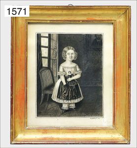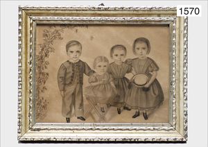 Bleistiftzeichnung, J. C. Barths, Kinderdarstellung, 1865, aus höfischem Haushalt, Familie Dollfuss, von Vockersberg, vermutl. Handelt es sich um die Kinder der Familie Dollfuss, 29 cm x 36 cm, gerahmt, ein wenig stockfleckig