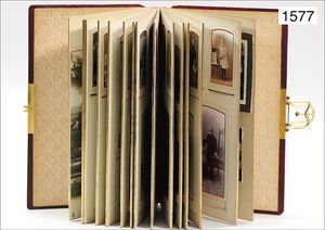 altes ledergebundenes Photoalbum, Jugendstil, mit alten Kinderphotografien, um 1885-1920, Messingbeschläge