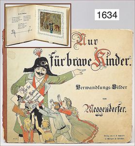 Bilderbuch, "Nur für brave Kinder, Verwandlungsbilder von Meggendorfer", Verlag Schreiber, Esslingen und München, 4. Auflage, Einband ein wenig verschlissen, innen kl. Fehlstellen sowie Bildstreifen lose, selten
