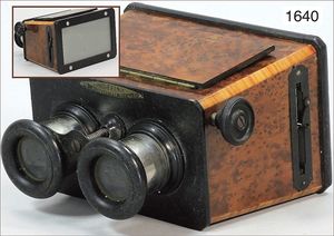 UNIS FRANCE Stéréoscopes-Paris, Frankreich, Wurzelholz furniert, 16,5 cm breit, um 1900, guter Zust.