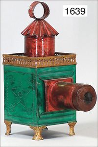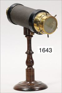 frühes Laterna Magica, ca. 1880, 55 cm, Blech, Guss-Sockel Reliefornament, Brenner mit Glasbehälter, Lötstellen an der Linse lose, sonst insges. guter Zust., außergew. runde frühe Form, museal