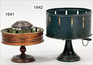 Zootrop, 34 cm hoch, 27,5 cm Durchm. Mit 3 Bildstreifen, teilw. altersbed. seitl. Einrissstellen, museal, ca. 1880