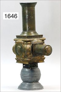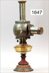 ERNST PLANK Laterna Magica, ca. 1890, mit 9 runden Bildscheiben, bauchige Form, mit Brenner, 24 cm hoch