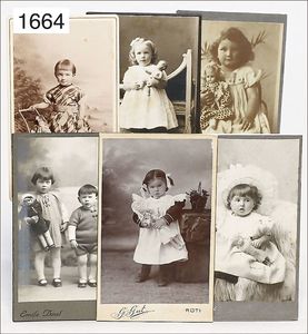 Konv. 30 Teile, Kinderphotos, mit Spielzeug, meist um 1900, dazu ein paar Photos neuer, 10,5 cm x 6 cm