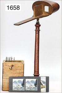 Stereoskop-Betrachter, mit Orig.-Aufnahmen, 13 cm breit, ca. 1910, dazu 3 Schachteln Orig.-Aufnahmen Autochroms Lumiere
