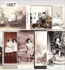 32 Teile, Photos, meist Kind mit Spielzeug, untersch. Gr., meist um 1900, 8 cm x 4 cm bis 16 cm x 13 cm