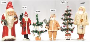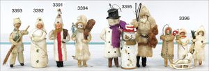 4 Teile, Watte-Figuren mit Oblaten-Gesicht, Weihnachtsmann, Kinder mit Schlitten, 9 cm bis 11 cm