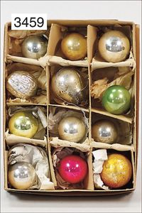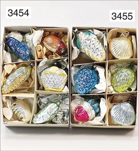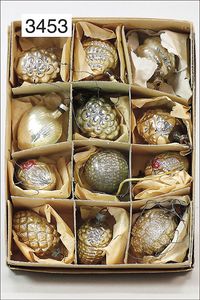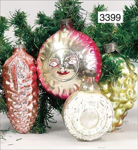 übergroße Spiegelglas-Christbaumkugeln, Zapfen, Mondgesicht, Zitrone, Trauben, 14 cm bis 16 cm, früh