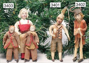 Christbaumschmuck, Watte, Frau mit 2 Männern, Masse-Gesicht und Krepp-Kleidung, 12,5 cm, ausgef.
