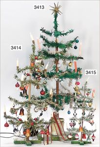 Christbaumschmuck, Federbaum auf Pappdose montiert, mit Kerzen, 24 cm Höhe, dazu Spiegelglaskugeln im Kart.