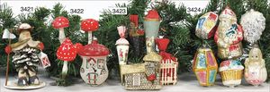 Christbaumschmuck, 6 Stück, Candy Container, 3 Schultüten, untersch. gestaltet, 1 Container in Geschenkform, 1 Weihnachtsmann-Stiefel, Watte-Haus, 8 cm bis 13 cm