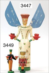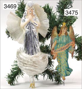Christbaumspitze, Engel, Flügel aus gesponnenem Glas, Farbe im Gesicht leicht abgeplatzt, 23 cm